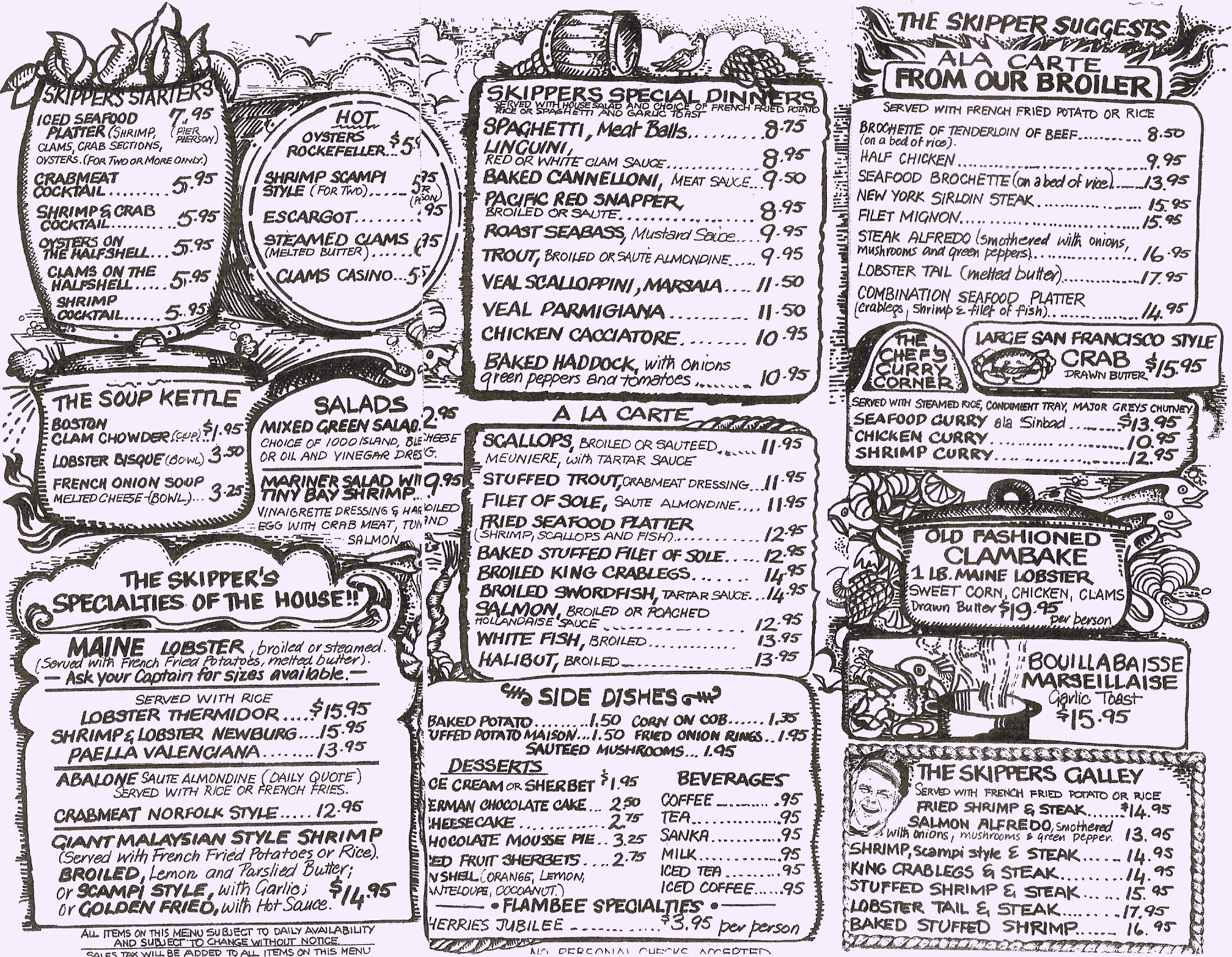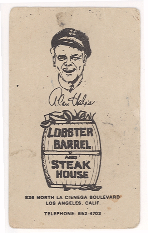 Dave Cunnnigham wrote to us and said that his parents took him to eat there once when Alan Hale Jr. was there. They all had steak except for his Dad, he had the lobster. After dinner the Skipper was at the door greeting guests, and he thanked them for coming. Alan looked down at David, messed up his hair and said, "Thanks for coming little buddy!" David remembers it like it was yesterday.
