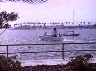 That area is still almost exactly like that today! It's a little bay at Ala Moana Beach Park, between the Ala Wai boat harbor and "Magic Island". The railing and everything is still there, but it's a bit rusty. The land you see on the Minnow's right is a outcropping of the beach park that is called Magic Island, and it is about 2 to 3 minutes from where I am right now as I write, and it is on the edge of Waikiki. Sometimes I sit right at the very spot where you see the minnow with my feet dangling over the side, playing guitar for my wife......I gotta learn the Gilligan's Island theme song and play it there!!! *grin*